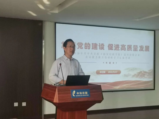 根據(jù)國(guó)科控股黨委要求和北京中科印刷有限公司黨委年度工作計(jì)劃安排,2022 年 9月27日上午8點(diǎn)30分,公司黨委書(shū)記孫立新同志以“加強(qiáng)黨的建設(shè),促進(jìn)高質(zhì)量發(fā)展”為題,將參加中央黨校國(guó)科控股企業(yè)政治能力提升培訓(xùn)班學(xué)習(xí)內(nèi)容、學(xué)習(xí)體會(huì)與公 ...