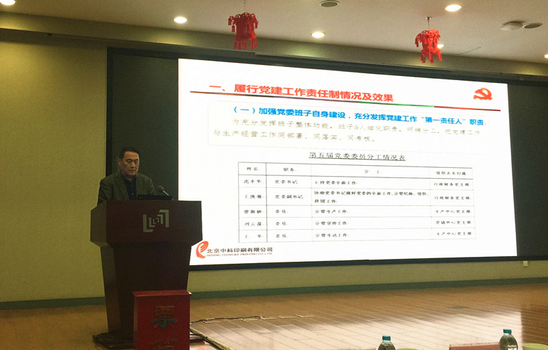 2018年1月22日,京區(qū)企業(yè)2017年度黨建工作述職報(bào)告會(huì)在文獻(xiàn)情報(bào)中心一層報(bào)告廳進(jìn)行。我公司黨委書記、董事長(zhǎng)沈幸華同志代表中科印刷就2017年度的黨建工作做了述職報(bào)告。